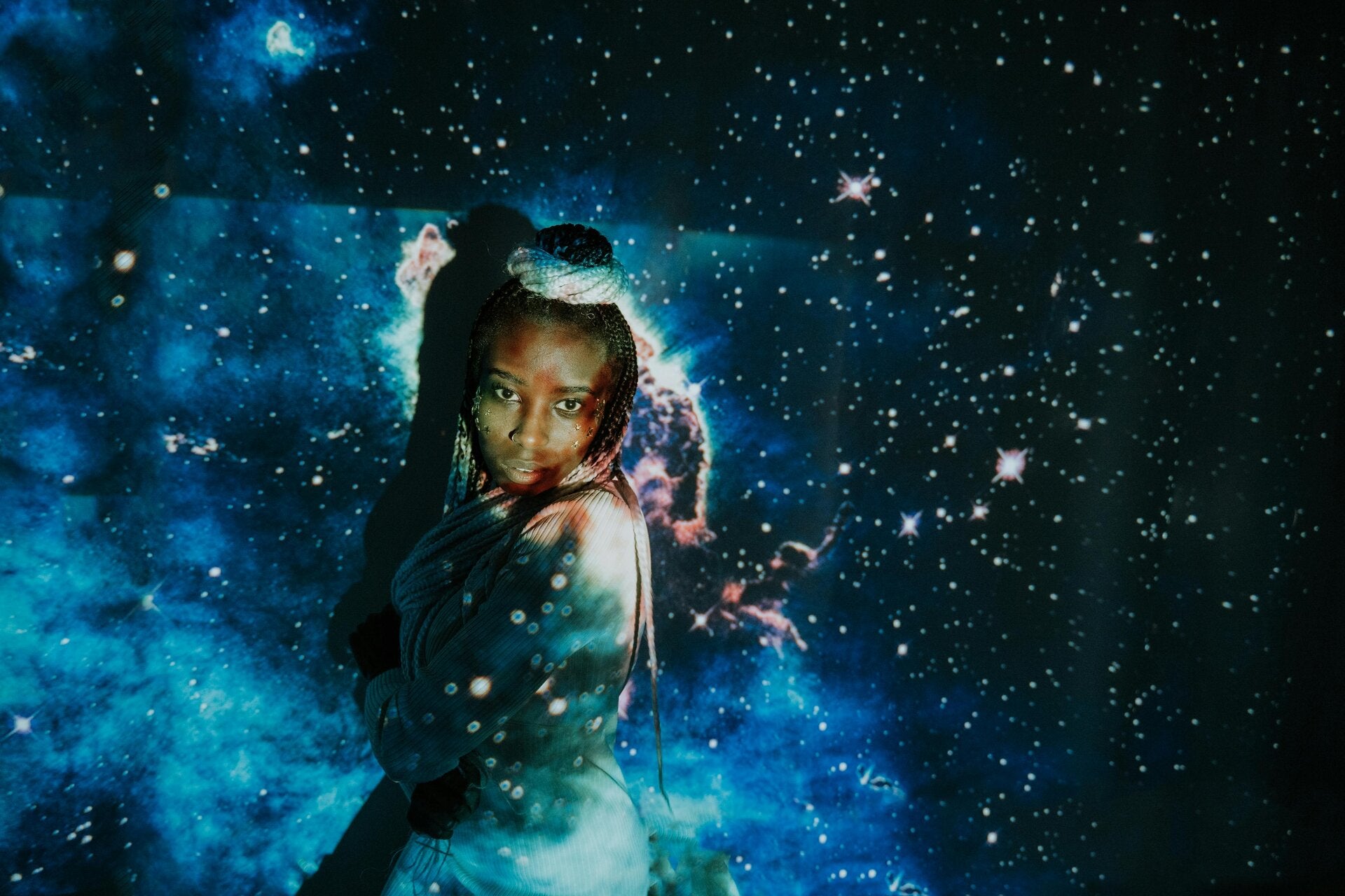 Noir profond, bleu abyssal, semelle irisée : elle absorbe le chaos et le renvoie en énergie pure.